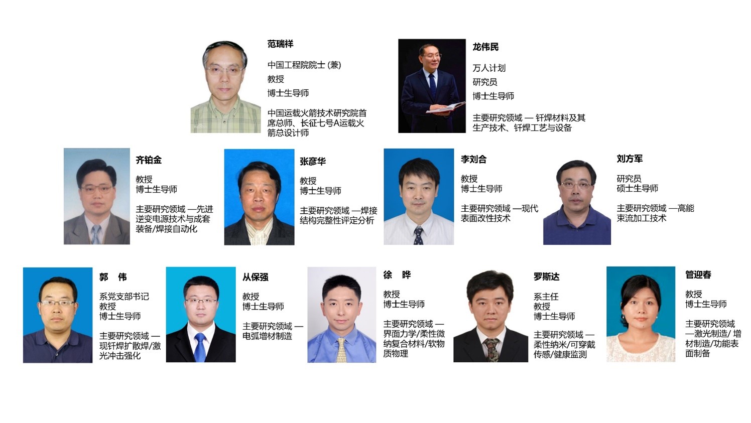 材料加工与控制系始建于1955年,由原焊接教研室发展形成。系所依托于航空高端智能制造技术工信部重点实验室,经过多年的努力与探索,逐渐形成了以航空宇航先进连接技术及装备、先进微纳加工及增材制造、智能材料及功能表面为主要研究特色的现代材料科学工程与智能机电一体化技术相结合的学科体系。现有工程院院士1名(兼职),教授/研究员11名,副教授8名,博士生导师17名,其中国家级人才1人,国家级青年人才3人、教育部新世纪优秀人才1人、北京市优秀青年教师1人、北航青年拔尖人才8人。