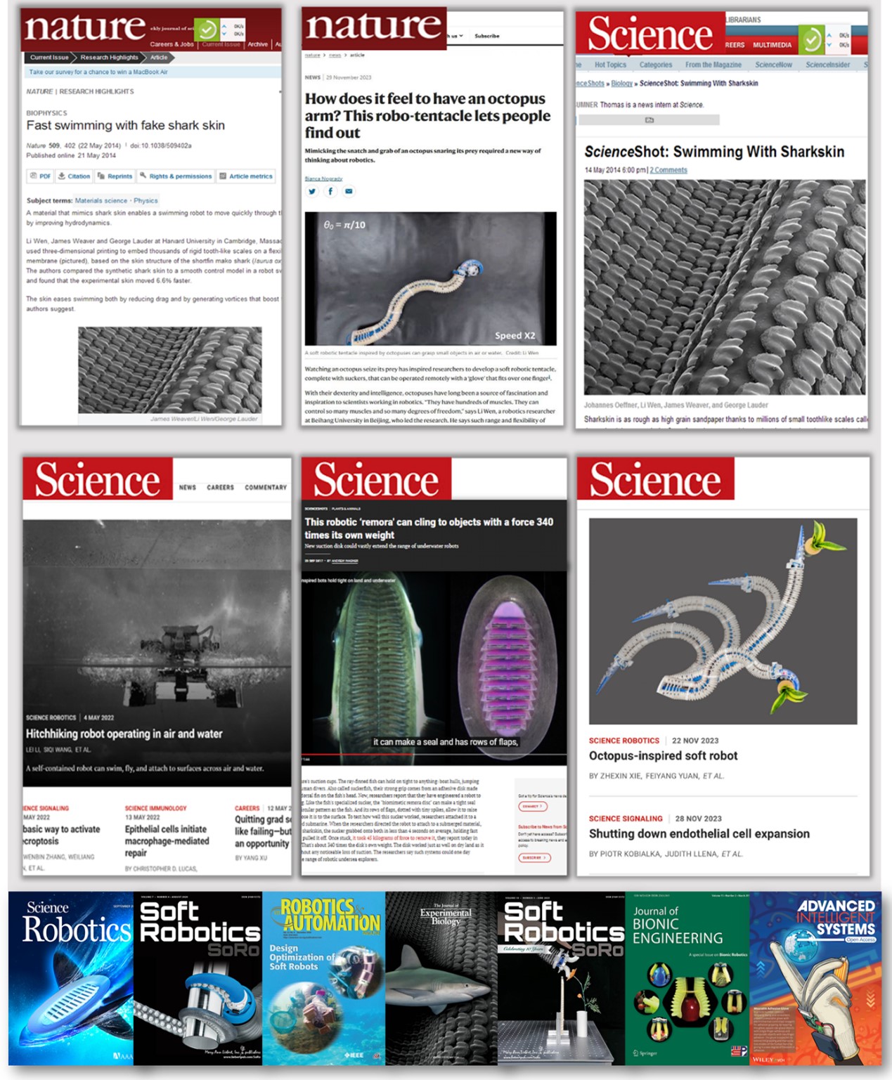 在本研究方向具有正教授2名,副教授4名,国家级青年人才2名。该研究方向的相关研究成果在机器人领域顶级杂志Science Robotics(封面), Nature Communications, Science Advances, Int. J. Robot. Res. (IJRR), IEEE 汇刊等共发表SCI论文共100余篇;其中包括 Science/Nature子刊共10余篇,包括机器人领域顶级期刊《科学-机器人学》 (Science Robotics)论文6篇。