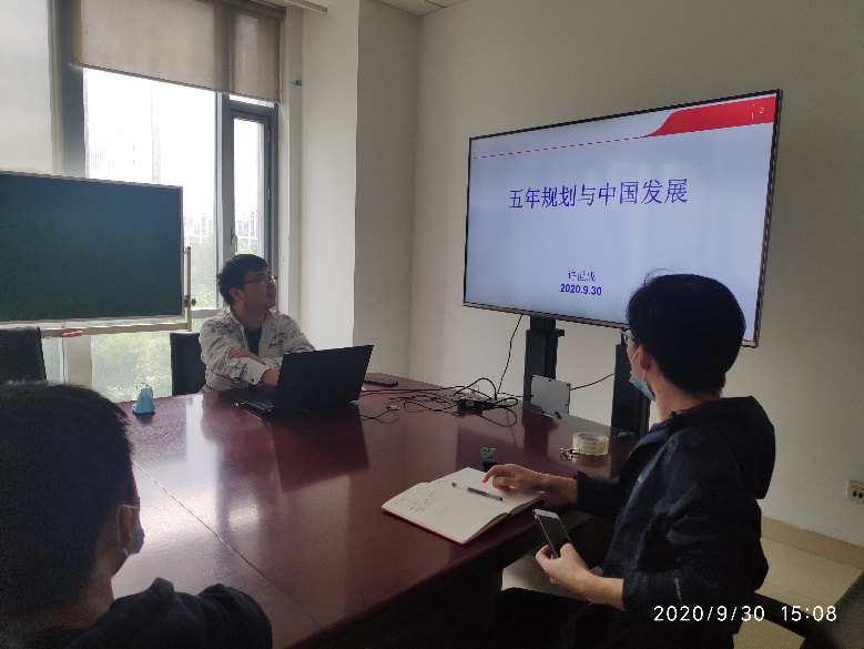 同日,支部开展了本学期第一次主题党日即“学习日”活动,由许世成同志担任主讲人。2020年是“十三五”规划的最后一年,许世成同志以“五年规划与中国发展”为主题,带领大家回顾了迄今为止十三个五年规划(计划)的发展历程、主要内容和完成情况,剖析了五年规划的历史背景及重要作用,帮助支部同志们深入了解了我国的五年规划。