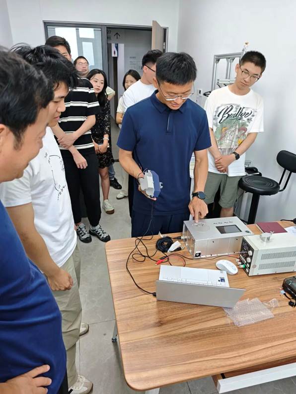 分享结束后,支部成员向桂海潮老师展示了课题组在触觉感知领域的成果:一是微重力环境下人体触觉信号传导规律与感知阈值变化的基础研究;二是可模拟不同压力、纹理触觉感觉的触觉反馈手套。桂海潮老师体验了触觉手套装置后,结合出舱经历指出:“太空操作时,厚重手套会削弱触觉敏感度,你们的装置若集成其中,实时传递微小受力变化,可大幅降低操作失误率。”基础研究与应用场景结合,正是科研服务国家重大需求的关键。最后,桂海潮老师鼓励:“航天领域的每一项技术突破都源于扎实的基础研究,希望实验室能持续深耕触觉这一领域,让实验室的创新成果真正为空间站任务提供技术支撑。”