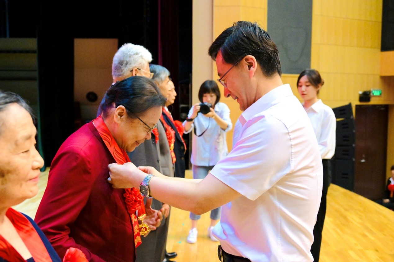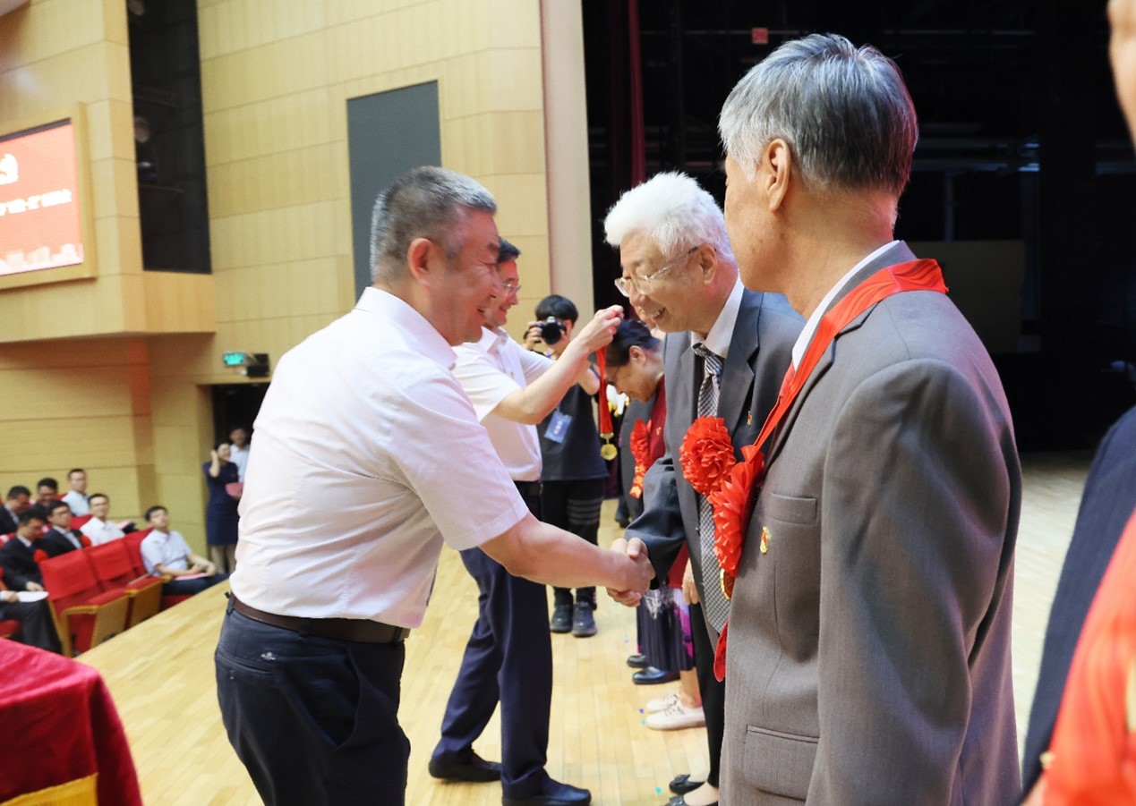公司党委书记赵长禄,党委副书记、董事长王云鹏为“光荣在党50年”老党员代表颁发纪念章