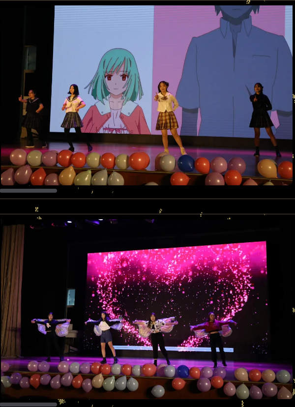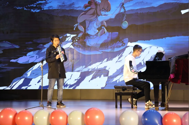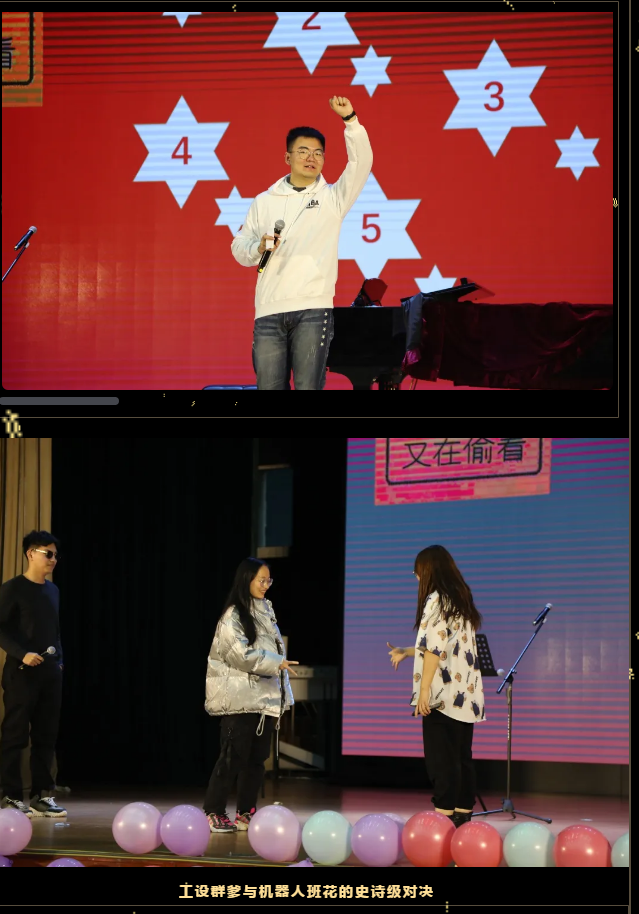 在两位经验丰富的主持人半即兴的串场下,我们大班的一名名身手不凡的“斜杠”青年们轮番上台表演。唱、跳、rap兼具,文体两开花!正是“八仙过海,各显神通。”现在让我们跟随主持人的脚步,来回顾一下晚会那些精彩纷呈的节目吧。
