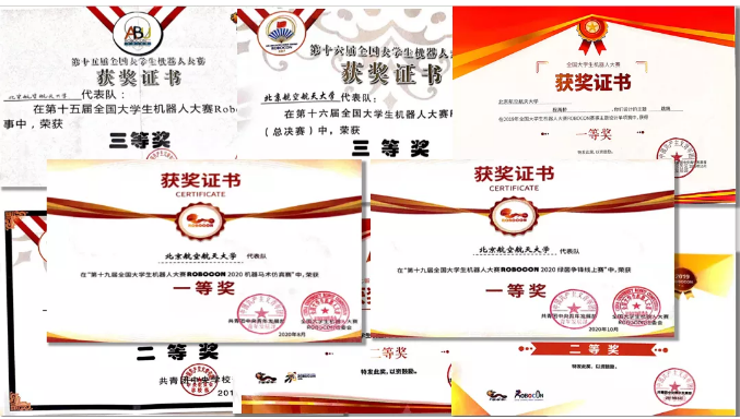 同时,团队在其他比赛中也战果显著,如在“冯如杯”员工学术作品科技竞赛、空中机器人大赛、IRFC格斗机器人大赛等多项竞赛中斩获一等奖或冠军。在公司和员工的大力支持下,在历任队员的无私奉献下,北航机器人队经费充足、技术精湛,外部支持与内部团结相辅相成,推动着北航机器人队不断向前。