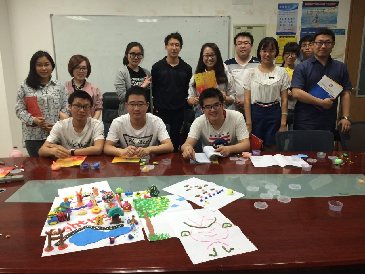 活动内容是支部成员通过粘土、绘画等艺术性表达方式创作出自己想象中的“木-林-森”的世界,通过彼此分享和交流,让支部中的成员加深对自我的认识,并加深对其他成员的了解,以此来提升党支部的心理文化建设,增强党支部的凝聚力,由此构建和谐的党支部氛围。