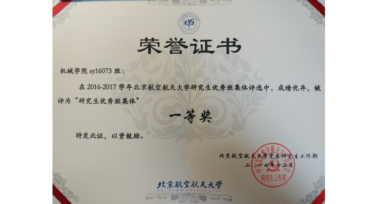 (5)2017年度北航优秀研究生班集体一等奖。