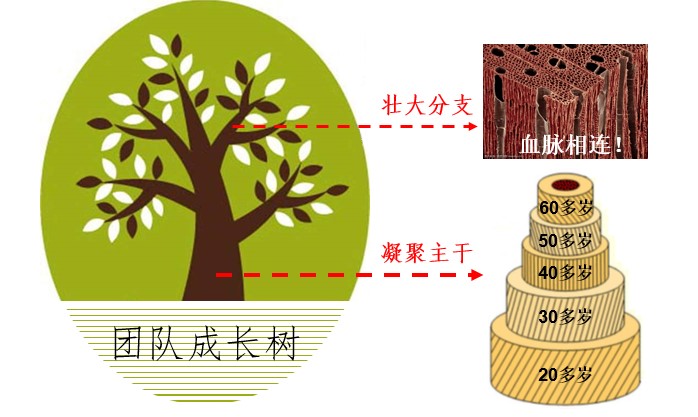 大势所趋,大变!张德远教授由广至微,层层深入地分析了当今时代-国家-北航-团队的发展潮流与变化趋势,指出团队正处于人才与成果成长关键期,进而提出团队在剧烈的改革大潮中保持生命力的关键是:凝聚主干、壮大分支!巨树有年轮,团队亦如此,生龙活虎的“小鲜肉”紧密环抱于意志坚强的"硬核心",用“家文化”的团队凝聚力保持血脉相连的团队整体,使得团队成长树生机勃勃,不断壮大。