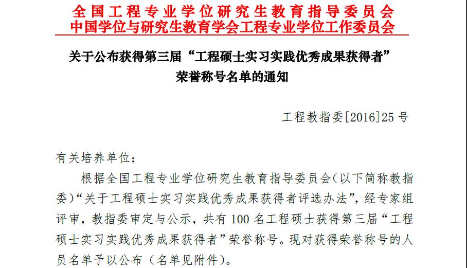 公司2012级工程硕士研究生王伦获全国第三届“工程硕士实习实践优秀成果获得者”荣誉称号(名单见附件)。“工程硕士实习实践优秀成果获得者”的评选工作由全国工程专业学位研究生教育指导委员会组织,公司连续两年有员工获此殊荣。