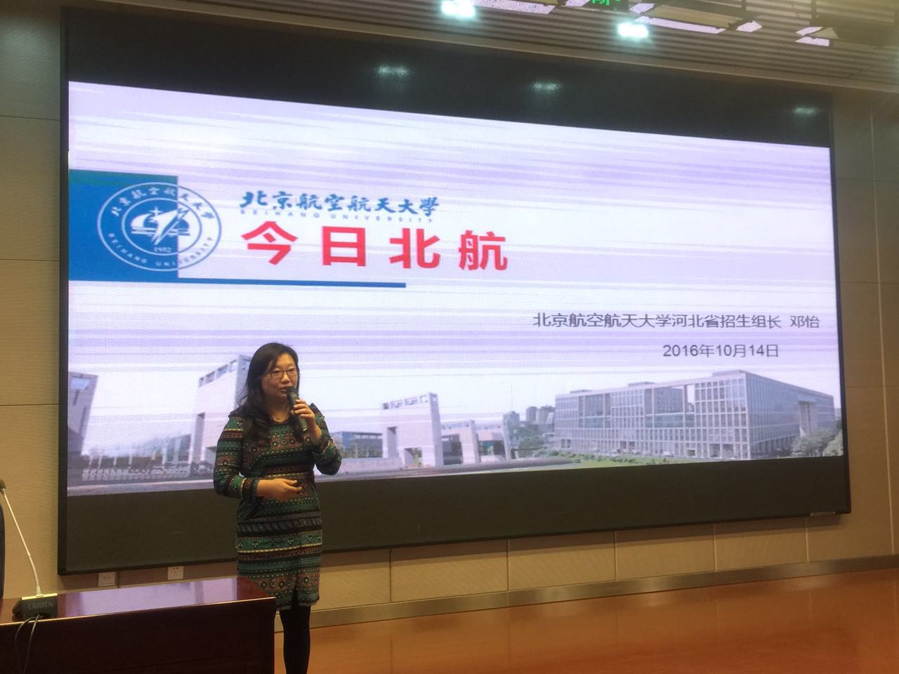 近3年来,北航在河北省的文理科招生成绩取得了较大的提高,理工类成绩从全省前1000名提升至全省前800名。希望系列活动的开展,进一步将公司的情况在河北地区进行更为广泛的宣传,让更多河北省优秀学子了解北航、考入北航,热爱北航,同北航共同成长,成就梦想。