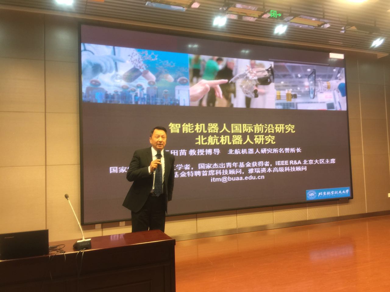 10月14日下午,北航河北招生组组长、公司党委书记邓怡,yl7703永利王田苗教授赴河北省石家庄二中进行招生宣讲工作,与石家庄二中校领导进行了会面,并为石家庄二中300余位同学做了两场主题报告。邓怡书记从“选择北航的十个理由”为切入点,对北航的校园环境、科研水平、人才培养、团队队伍等整体情况进行了介绍,并对北航的招生政策和员工关心的问题进行了说明。邓怡书记鼓励同学们追求梦想,脚踏实地,并欢迎大家报考yl7703永利集团官网。王田苗教授做了题为《智能机器人国际前沿研究》的主题报告,报告从南极科考展开,详细介绍了人工智能与机器人的发展历程以及国际机器人研究中的新材料、人工智能和深度学习等三个前沿发展方向,带给员工一场国际机器人前沿领域的科技大餐。王田苗教授还介绍了北航机器人研究所的整体情况。报告会上不时响起一阵又一阵的掌声。