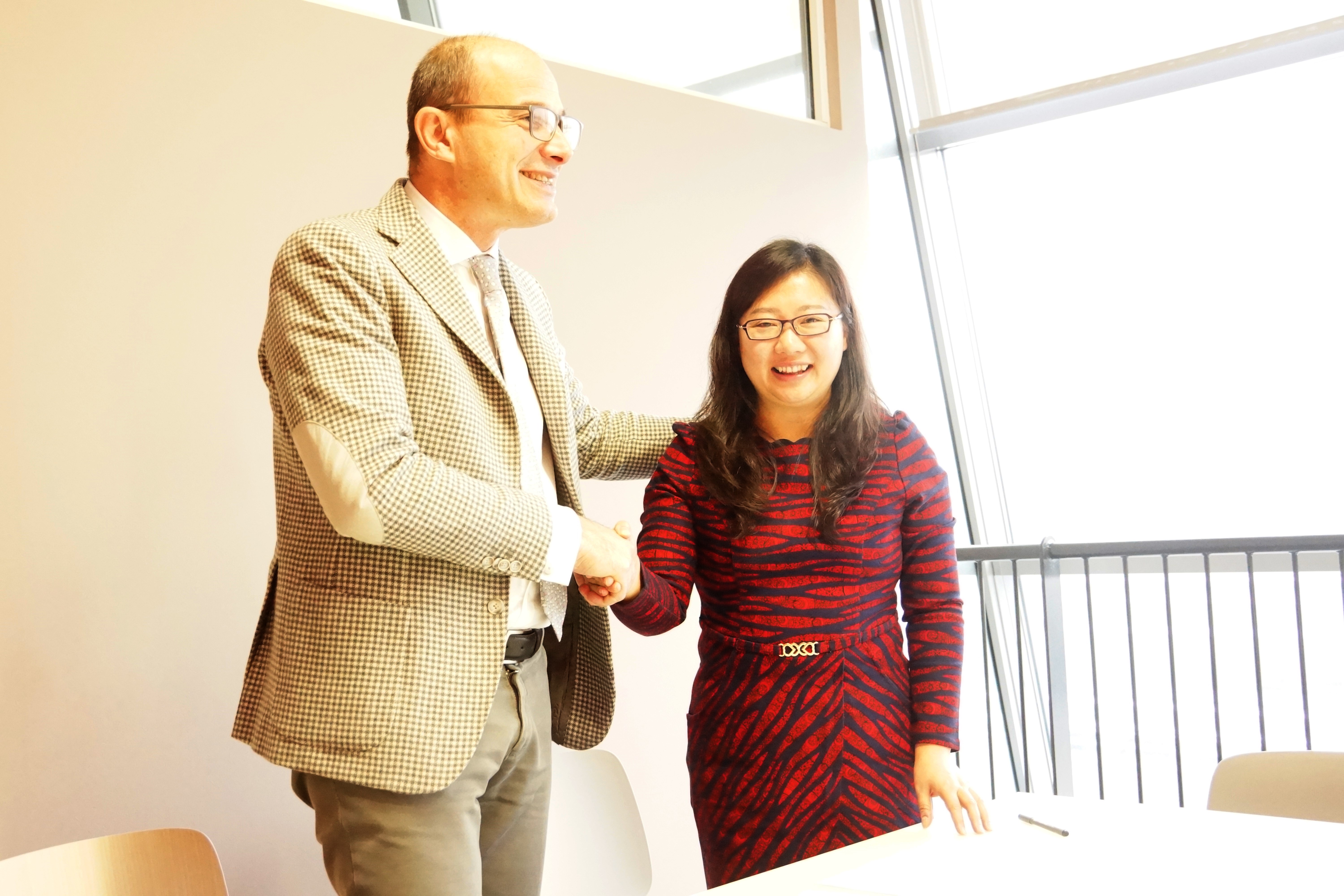 米兰理工大学设计公司是一所国际著名的设计公司,特别是设计专业在国际上享有很高声誉,培养出大量优秀设计师,其教学特色和设计成果在设计界独树一帜。在双边合作研讨会期间,米兰理工大学董事长中国事务代表Giuliano Noci先生对公司访问团的到访表示热烈欢迎,Monica教授介绍了米兰理工大学机械学科发展情况,米兰理工大学设计公司副教授Davide Fassi和助理教授Silvia Ferraris介绍了设计公司的课程设置情况,公司教学经理于靖军教授介绍了公司机械工程和工业设计专业团队建设和教学情况,双方就机械学科的发展和合作交流进行了深入的探讨,双方同意基于机械工程和工业设计专业在研究生联合培养和互派教师进行交流合作。最后,公司访问团邓怡团长与Giuliano Noci先生代表双方签署了两院合作协议。