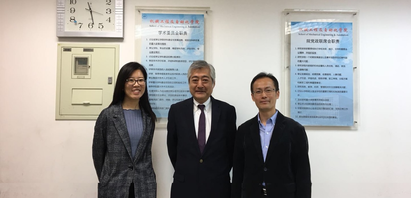 2018年10月11日,日本庆应义塾大学国际处处长、机械工程系主任小尾晋之介教授在公司国际交流合作处专家交流科科长陈璀老师的陪同下,参观公司,并与主管外事工作的蔡军副经理进行友好地交谈。