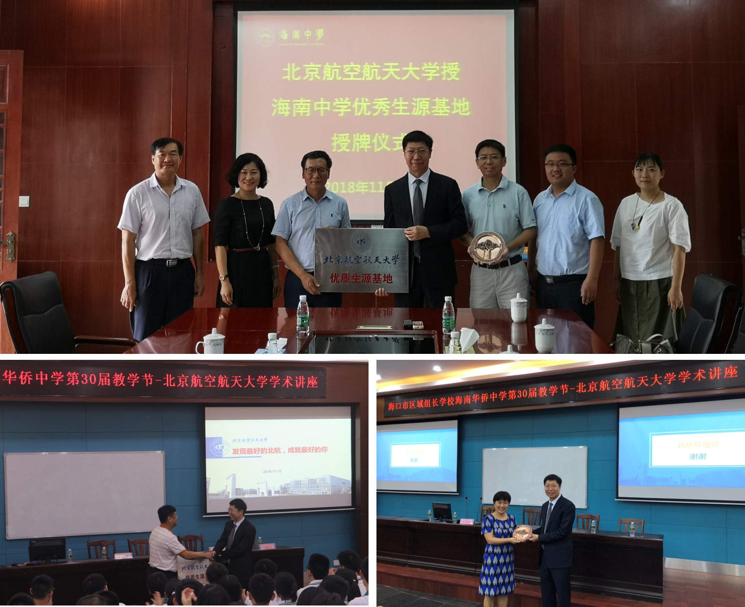 海南中学、海南华侨中学是海南省著名的重点中学,每年两校考生合计占公司在海南录取的考生70%左右;本次招生宣传工作强化了公司招生组与两所公司的联系,提升了北航在优秀员工中的影响力。近年来,海南招生组高度重视高招宣传工作,通过持续开展“教授进中学”、“优质生源基地”授牌等活动,巩固公司在海南考生中的认可度,大力提升生源质量,2018年海南理科录取名次已从2015年的240名稳步提升至170名。今后海南招生组将继续加强与当地知名中学的联系,将招生宣传工作精细化精准化,吸引更多优秀学子圆梦北航。