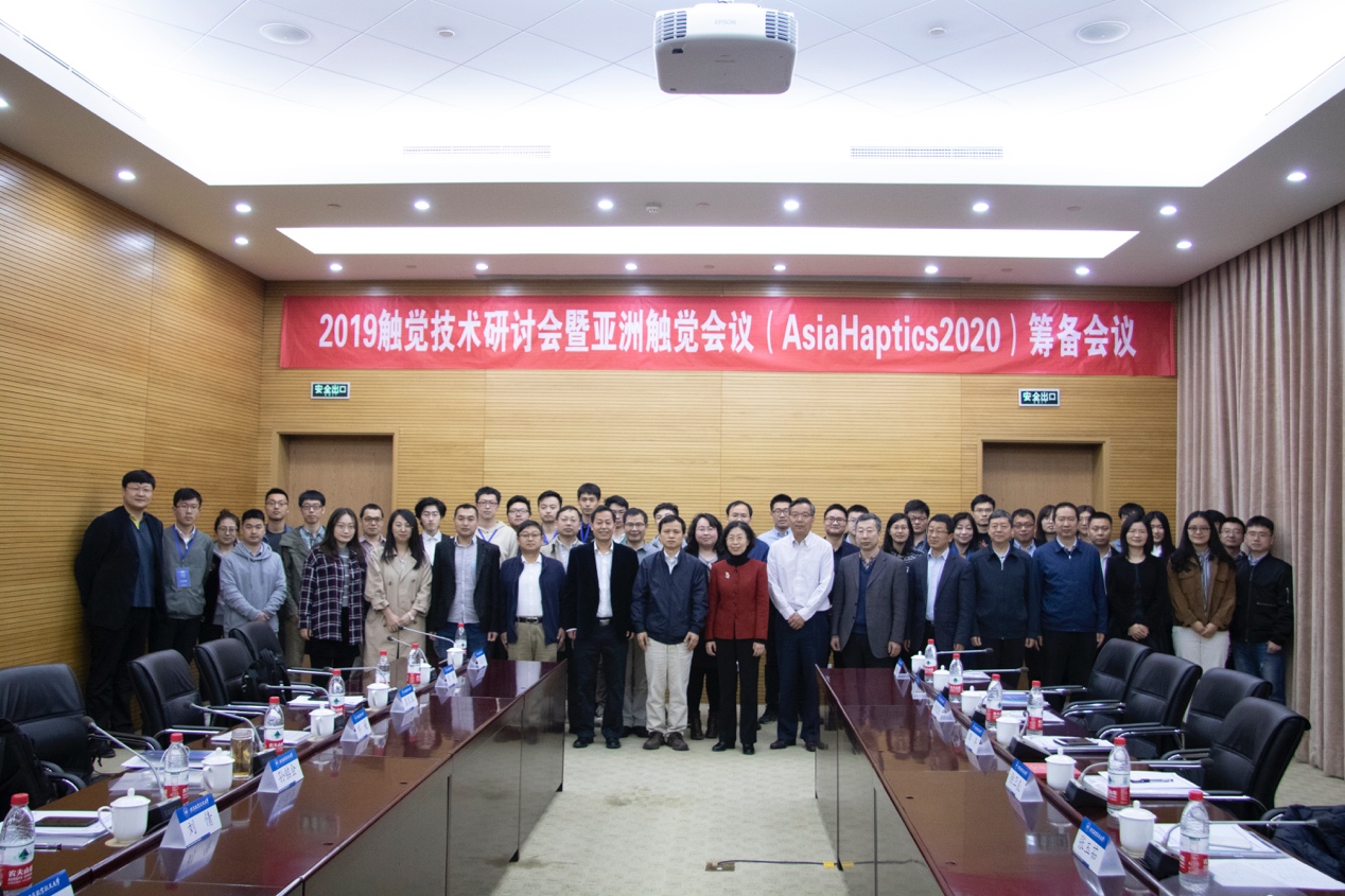 2019年4月20日,2019触觉技术研讨会暨AsiaHaptics 2020筹备会议在北航新主楼国际会议中心第八会议室召开。会议由虚拟现实技术与系统国家重点实验室主办。会议邀请了多位从事触觉交互领域的专家参加,包括新西兰工程院院士、新西兰奥克兰大学机电工程首席教授徐卫良教授,东南大学仪器科学与工程公司经理、国家级领军人才宋爱国教授,清华大学美术公司信息艺术设计系主任、国家级领军人才徐迎庆教授,虚拟现实技术与系统国家重点实验室主任、国家级领军人才胡事民教授,吉林大学通信工程公司经理、国家级领军人才孙晓颖教授,中科院软件所研究员、国家级青年人才田丰研究员,yl7703永利集团官网张玉茹教授、李德玉教授,武汉大学袁志勇教授等多位专家,华为、Pico、诺亦腾、众绘、红京鸟等多所高科技公司代表,以及Springer、科学出版社等单位代表。本次大会吸引了百余人参会,共同探讨触觉交互领域的前沿技术,协商AsiaHaptics 2020筹备计划。