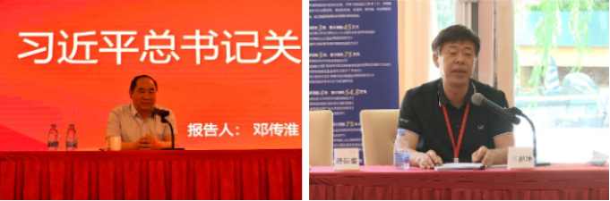 教育部政策法规司邓传淮司长做“习近平总书记关于教育的重要论述”的主题报告。他引用大量生动形象的案例,深刻阐述了习近平总书记关于教育重要论述的丰富内涵,科学分析了新时代教育的发展形势、发展理念、发展战略和发展思路。他指出要聚焦“一个根本”、“两个大计”、“三个地位”、“四个主体”、“五个目标”、“六个下功夫”、“七个第一”、“八个学会”、“九个坚持”,全面、准确、深刻地领会习近平总书记关于教育重要论述的核心要义,做到立德树人,学做结合。中央党史和文献研究院一级巡视员王相坤主任做“中国共产党的创建”的主题报告,他分别从“马克思主义为什么传到中国较晚”、“中国共产党为什么于1921年成立”等问题出发,详细介绍了中国共产党成立的历史背景及其深远影响。