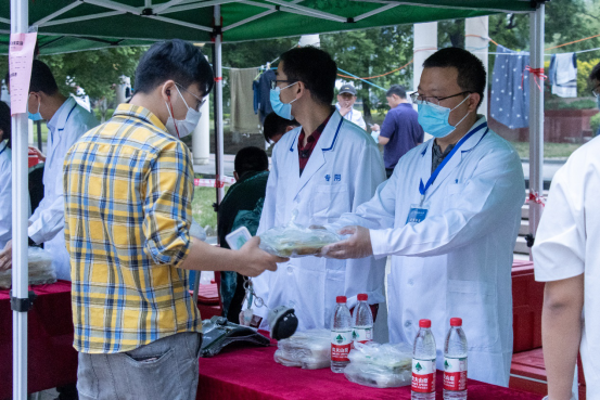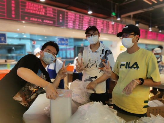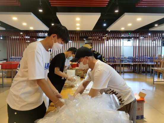 党员同志们进入志愿岗位后,以最快速度完成了培训,便迅速投身到套餐打包、食堂秩序维持等工作中,同志们服从指挥、听从调度,配合食堂工作人员高效完成了疫情防控志愿防护任务,受到了一致好评。