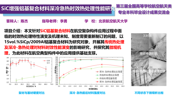 陈杰同学的毕设成果《SiC增强铝基复合材料深冷急热时效热处理性能研究》(指导教师:李勇教授)荣获飞行器制造工程专业组优胜奖。