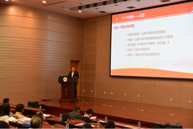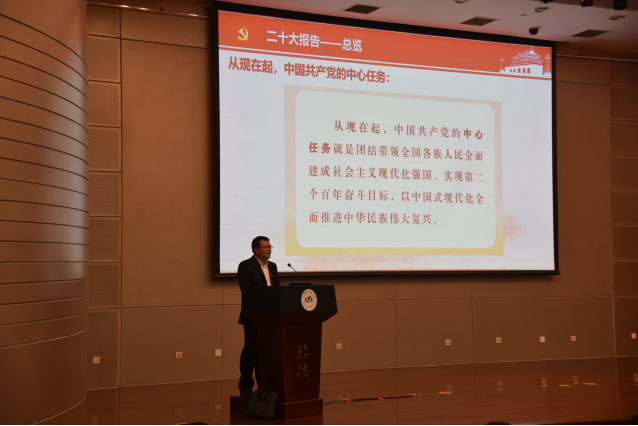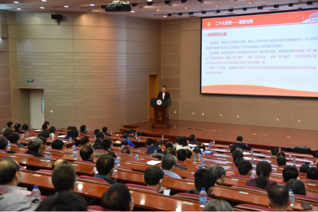 张志刚同志从二十大报告基本内容、二十大重要成果、二十大报告中关于教育的有关内容等方面做了深入领学。他提到,全院同志要深入学习贯彻党的二十大精神,按照习近平总书记提出的五个‘牢牢把握’的要求,全面贯彻党的教育方针,落实立德树人根本任务。全院师生要以党的二十大精神指导,将党的二十大精神要求融入日常教学科研工作,在“十四五”期间取得更大成绩。