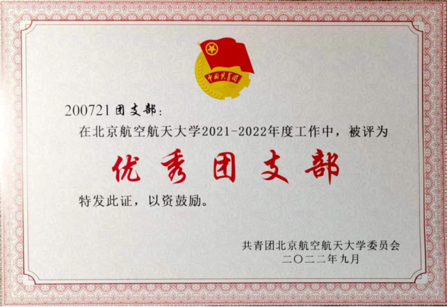 200721班求同存异,奋发拼搏,昂扬向上,敢为人先。班级整体学风优良,学习成绩优秀,学年内多名同学获得各项奖学金,并在学习之余担任助教。在班级成员的相互交流和共同努力下,200721班在2022-2023秋季学期被公司推荐为优良学风班。学科竞赛、科研创新方面,200721班同样斩获佳绩。班内5人加入实验室课题组开展科研项目,10人次参加北航机器人队,3人参与项目实习,并取得科研成果至少3项。多支班级成员参与或组成的队伍在各项科创竞赛取得卓越的成绩,共斩获北航“冯如杯”科技竞赛三等奖两项,北航“启先杯”一等奖一项、三等奖一项,北航电子创新大赛一等奖一项,一支大创项目表现出色、入围国创。
