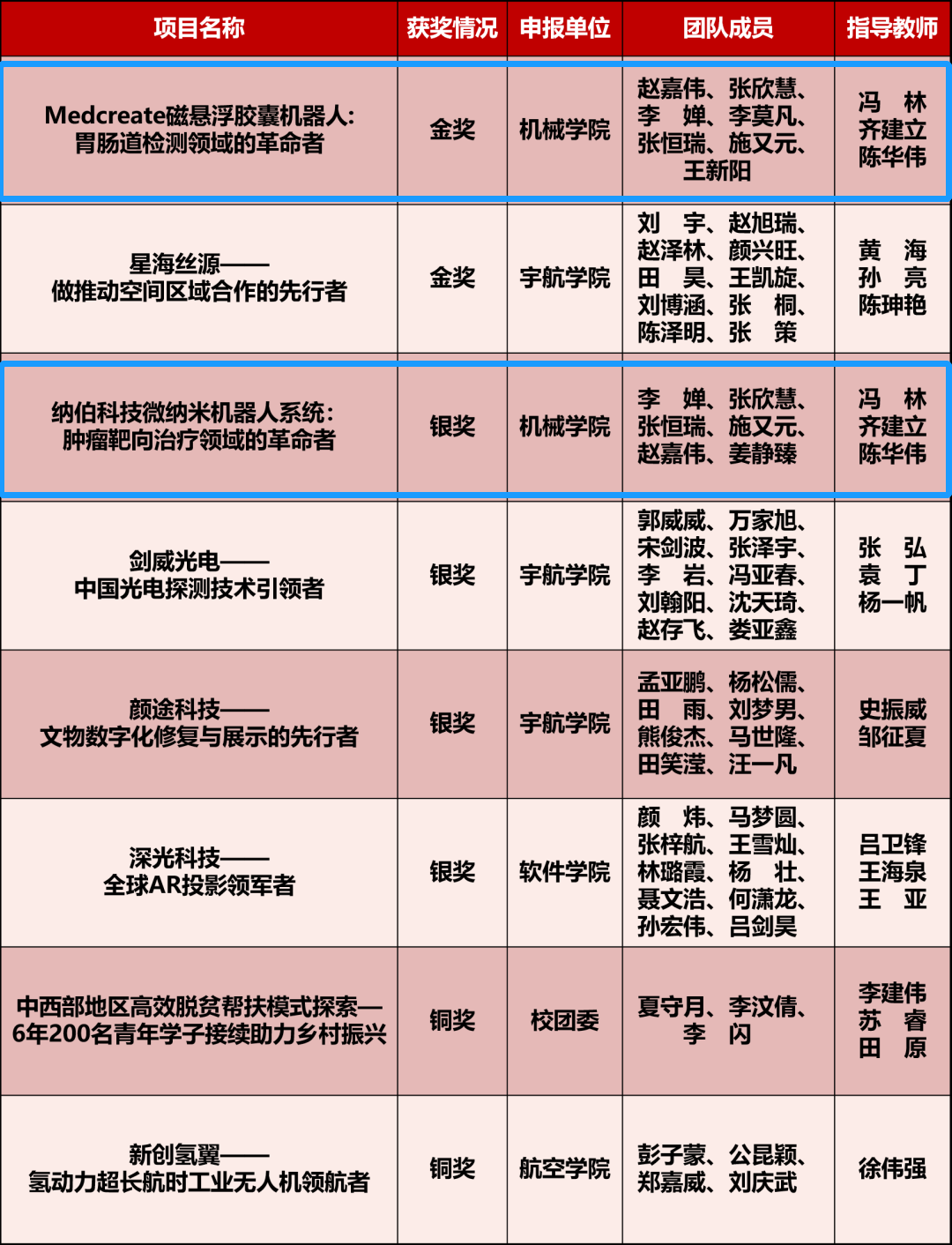 经过校内筛选、首都比赛,公司共8个项目入围全国比赛,6个项目入围终审决赛答辩;yl7703永利共2个项目入围终审决赛答辩,其中《Medcreate磁悬浮胶囊机器人:胃肠道检测领域的革命者》获金奖,《纳伯科技微纳米机器人系统:肿瘤靶向治疗领域的革命者》获银奖,在本届赛事中取得了优异成绩。