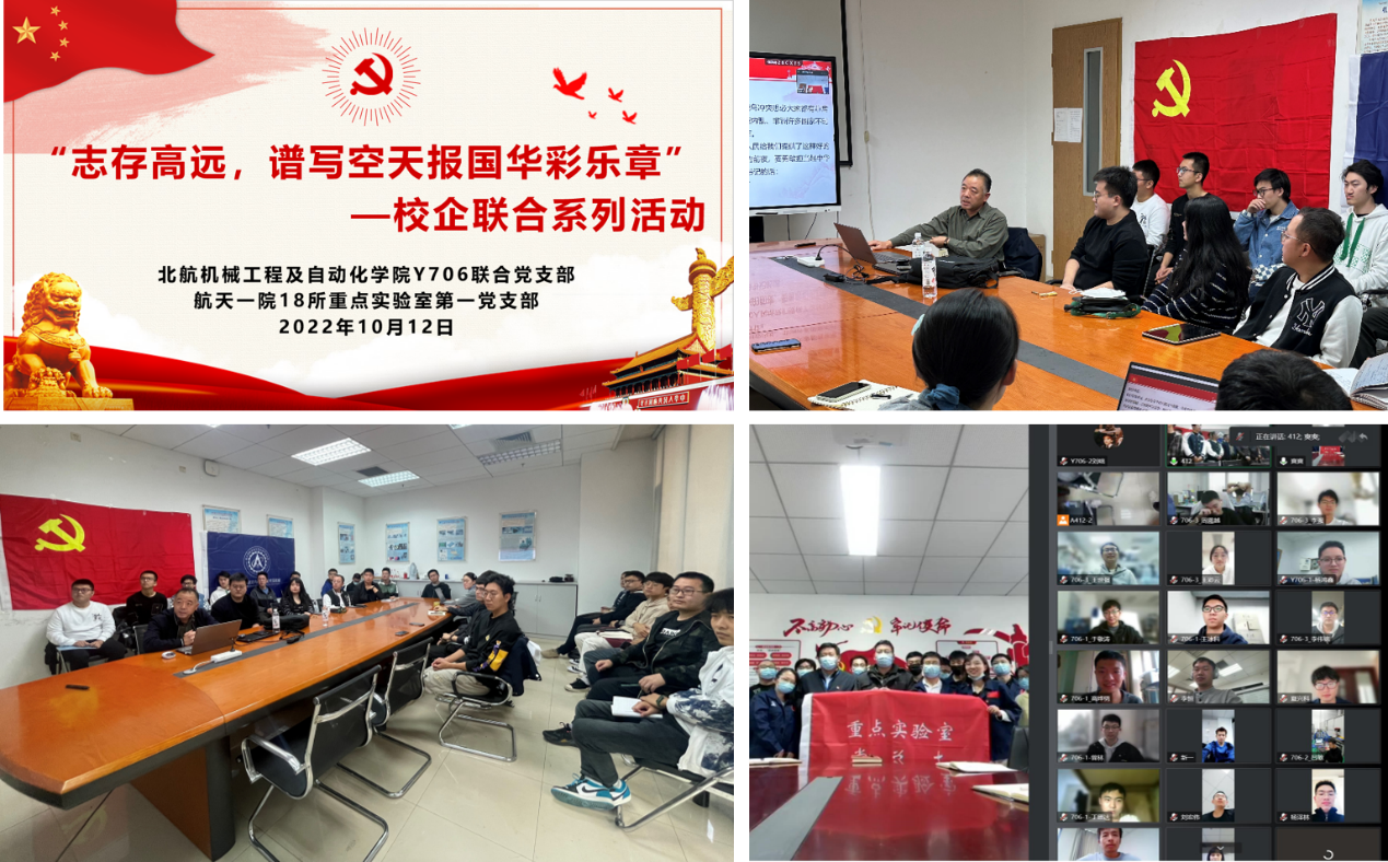 回首过去硕果累累,展望未来信心百倍。为以实际行动助力我国空天事业建设,yl7703永利机电系研究生联合党支部(Y706-1党支部、Y706-2党支部、Y706-3党支部)与中国运载火箭技术研究院十八所(航天一院18所)重点实验室党总支,共100余名党员同志、积极分子及员工群众,共同开展了主题为“志存高远立鸿鹄之志,空天报国谱华彩乐章”的校企联合党建系列活动。