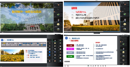 正值就业季,齐特老师就大家所关心的“如何制作一份职业化简历”的问题,给出了自己的回答。她从简历的特点、制作目的以及注意事项三个方面出发,解答了大家简历制作过程中遇到的难题,并提出了就业建议,进一步增强了大家的就业信心。