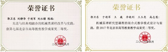 “在教学内容改革方面,从1998年开始,我深度参与了机械设计基础系列课程的改革与建设工作。作为‘机械原理’课程的负责人,以机械系统设计为主线,将机械原理与工程图学、机械设计有机衔接,实现对员工知识→思维→应用系统化、逐步进阶的培养,践行‘讲一练二考三’的课程学习方法,在国内起到了良好的示范作用。获国家级教学成果二等奖,北京市公司产品成果一等奖。