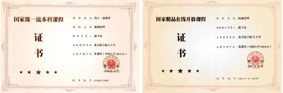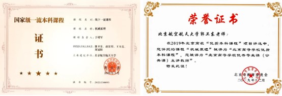 “从2003年‘机械设计基础’课程获得北京市精品课程开始,随着团队成员的增加,我们持续进行课程建设,先后建设为‘北航虚拟仿真课程’、‘北航研究型教学示范课’、‘国家精品在线开放课’、‘北京高校优质本科课程’、‘国家级线上一流本科课程’和‘国家级线下一流本科课程’。