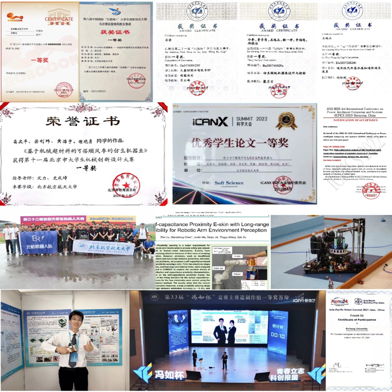 而在各类科技竞赛中,他们一起组队参与,获得过第三十三届冯如杯主赛道一等奖、中国国际互联网+老员工创新创业大赛北京赛区一等奖、全国老员工机器人大赛ROBOCON一等奖、首都挑战杯二等奖等奖项。