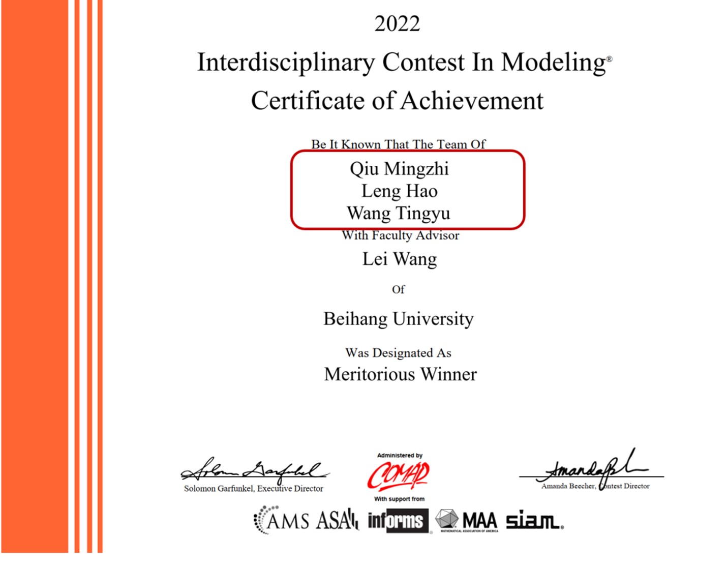 为拓展专业视野,他们积极参加各类学科竞赛活动,共获得全国老员工数学竞赛一等奖(2人次)、美国老员工数学建模竞赛M奖(3人次)等各类学科竞赛奖项18项。