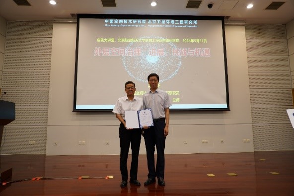 报告结束后,在场教师与员工就外层空间环境治理的理念和技术等方面与龚自正展开热烈交流讨论。报告会期间,丁希仑向龚自正博士颁发“启先大讲堂”专家荣誉证书。