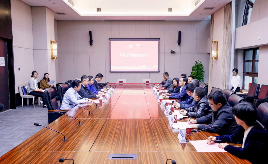 九号公司副总裁王勇与教育基金会秘书长封家平签署九号奖学金捐赠协议,与交通科学与工程公司经理杨世春签署方程式赛车队合作共建协议,与总务部部长邹煜良签署校园长椅捐赠意向协议书。