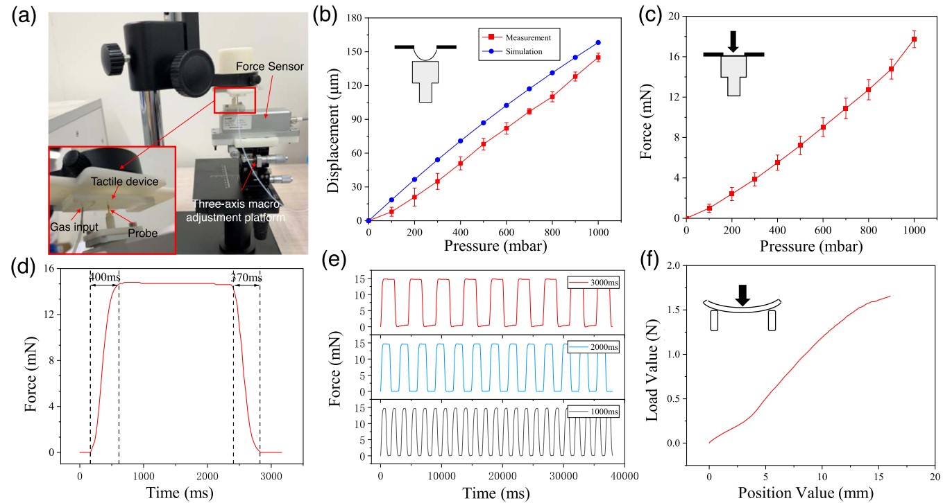 图3 高空间分辨率微流体触觉装置整体性能评估