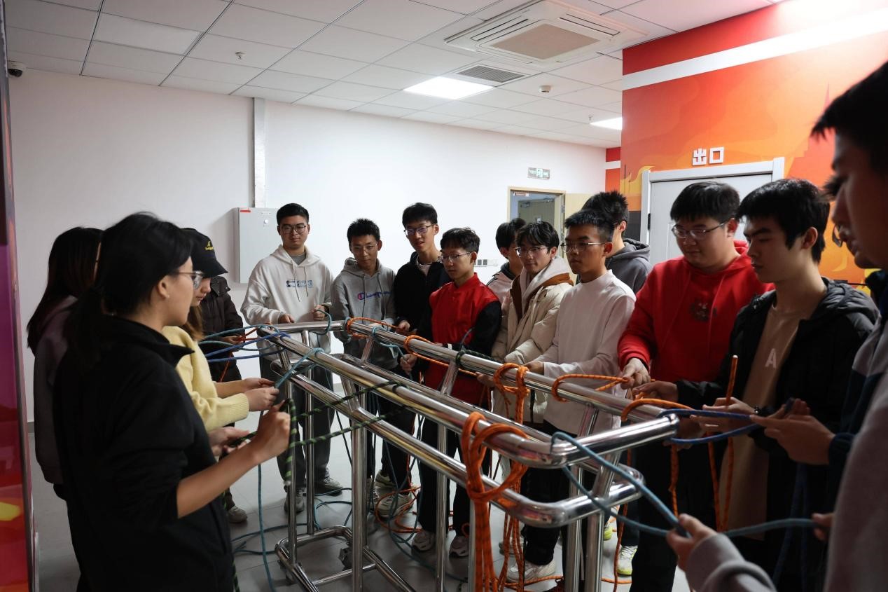 团员们在工作人员的指导下,反复练习打结、验牢,并主动向工作人员请教不同绳索粗细的系法差异、绳结松动后的处理技巧等问题。通过互动式学习,全体团员快速掌握了两种绳结的标准系法与应用逻辑。