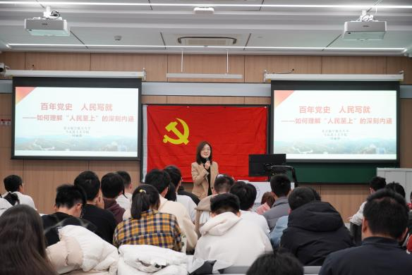 付丽莎老师在讲授中生动阐述了“坚持人民至上”的深刻内涵。“坚持人民至上”是中国共产党百年征程的制胜密码、理论创新与实践探索的核心主线,更是新时代治国理政的根本遵循。授课中,她从三个维度系统拆解这一重要理念:以革命战争年代推翻“三座大山”、抗日战争军民同心等历史事实,阐明人民立场是党的根本政治立场;以脱贫攻坚、科技创新等重大成就,印证人民主体是国家发展的力量源泉;以教育均衡、医疗完善、老旧小区改造等民生实事,诠释人民幸福是党不懈奋斗的终极目标。结合以“空天报国”为内核的北航精神,付老师进一步引导机械青年,要扎实钻研专业知识、对接国家战略需求,以精湛技术回应国家所需、人民所盼。