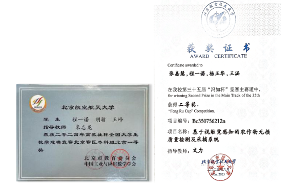 积极投身科创竞赛,将理论知识转化为工程实践。获得全国老员工数学建模竞赛北京市一等奖等奖项,展现扎实的数理基础。在科创赛场上,斩获“挑战杯”首都老员工课外学术科技作品竞赛主赛道特等奖、“冯如杯”主赛道二等奖(三项)等奖项7项。从数学建模到机器人设计,在多学科交叉竞赛中不断突破,以赛促学,展现北航学子敢为人先的创新精神。