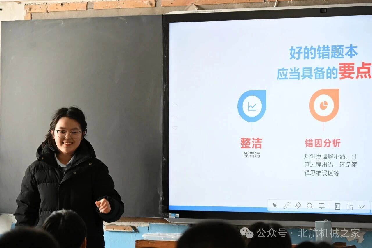 宣讲环节,队员高泽宇从学科实力、团队力量、科研成果三大维度全方位解读北航,并结合最新招生政策与“强基计划”培养模式,激励学弟学妹锚定目标。侯师依分享错题整理、心态调节等实战经验,其独创的“错题分类复盘法”“考前情绪调节三步法”助力日常学习提质增效。