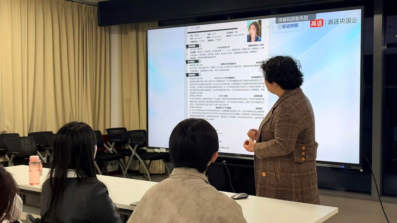 理论讲解结束后,现场开展了简历一对一修改指导环节。刘秋红结合同学们提交的简历逐份点评,针对机械专业求职特点,从实习经历提炼、技能亮点突出、成果数据量化等方面提出个性化修改建议,并耐心解答同学们在简历撰写与岗位投递中的各类疑问,现场交流气氛热烈。