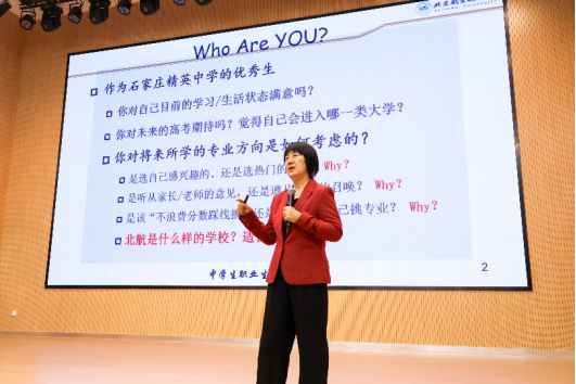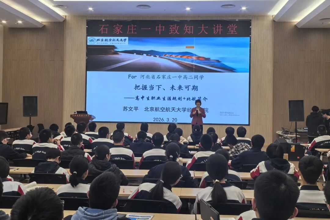 在石家庄精英中学,苏文平教授做客“精中名家讲坛”,围绕“认识自我”“了解外部世界”“科学决策”三个维度展开讲解。通过丰富的案例故事,苏文平生动呈现了不同性格、兴趣、能力特质的人在成长道路上的选择与收获。讲座中,苏文平结合戚发轫院士、桂海潮教授等北航杰出员工的成功案例,帮助同学们厘清了兴趣、专业与职业之间的内在逻辑。