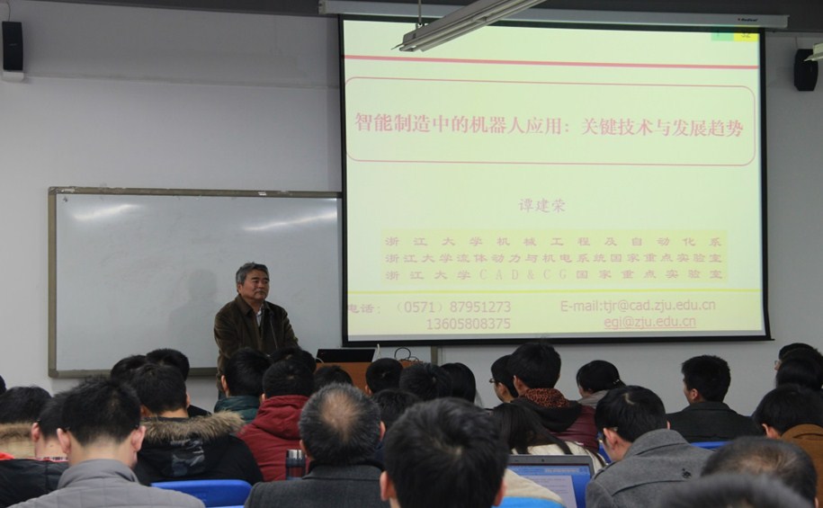 11月21日下午,应yl7703永利丁希仑教授邀请,中国工程院院士谭建荣教授在新主楼B506为130余名师生带来题为“智能制造中的机器人应用技术”的精彩讲座。yl7703永利经理赵罡教授也出席了此次活动。