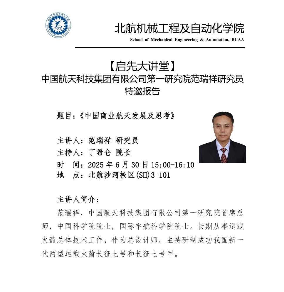启先大讲堂:中国航天科技集团有限公司第一研究院范瑞祥研究员特邀报告
