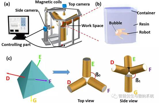 戴玉国同学的研究"Newly Established Three DimensionalMagnetically Controlling System"主要着重于空间中电磁线圈控制系统的开发及磁性章鱼形微小软体机器人的运动研究。微纳米机器人在三维空间实现可编程运动,例如利用磁场控制机器人在血管中进行清理工作或药物运输等,在生物医学中有重要前景。
