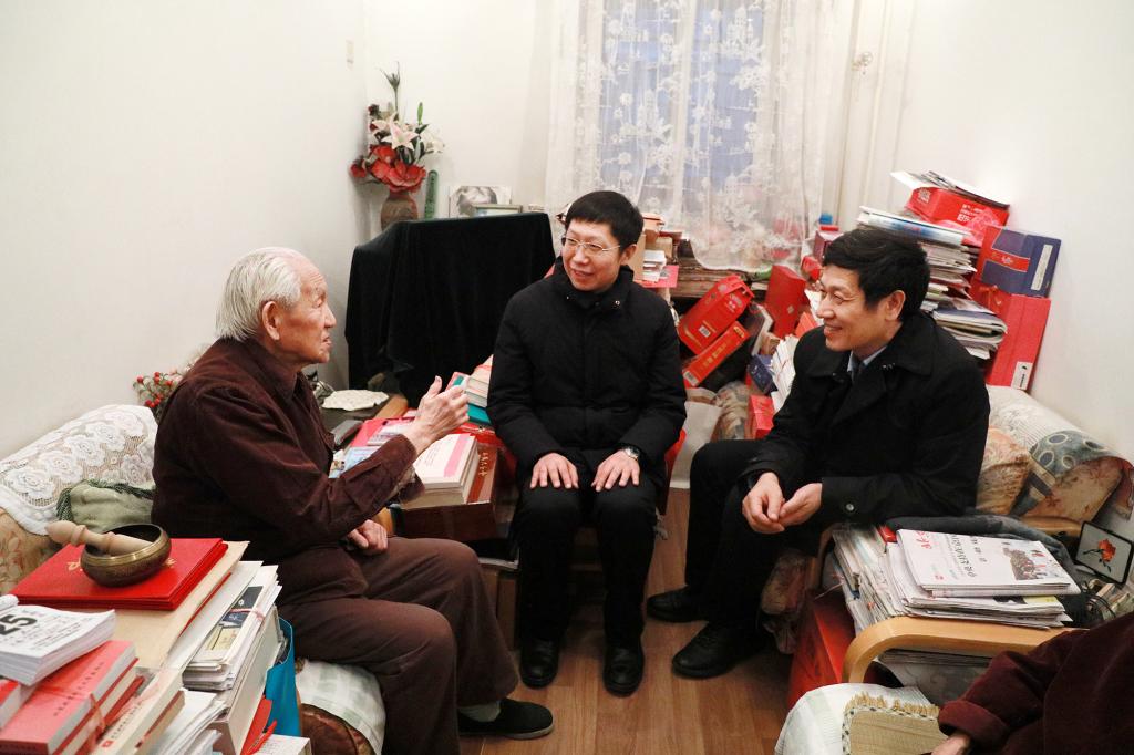 校院领导多次看望慰问郭可谦先生,表达师生对先生的崇敬。