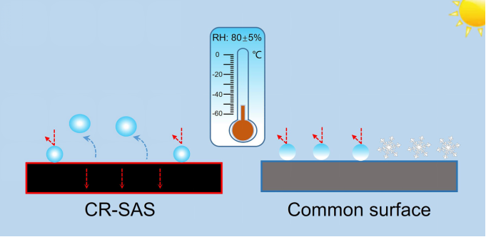 图3.在极端低温高湿条件下,CR-SAS表面可实现不结冰