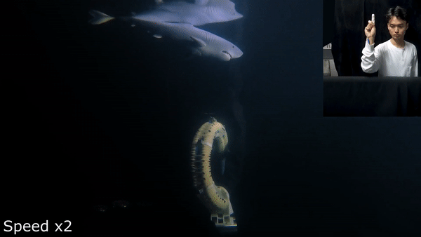 图10、图11:人控制仿生章鱼触手抓持水下移动物体