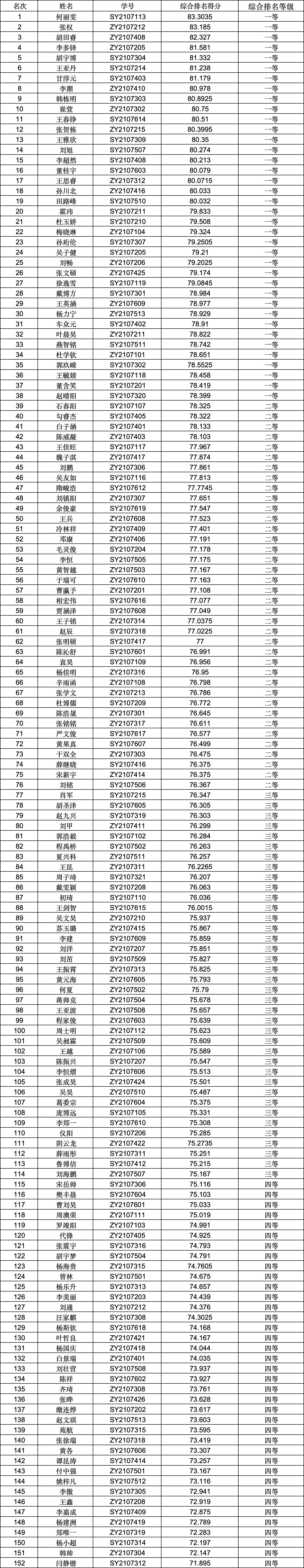 (注:综合排名等级分为四个级别。具体为:一等,成绩综合排名前25%;二等,成绩综合排名26%-50%;三等,成绩综合排名51%-75%;四等,成绩综合排名76%-100%。)