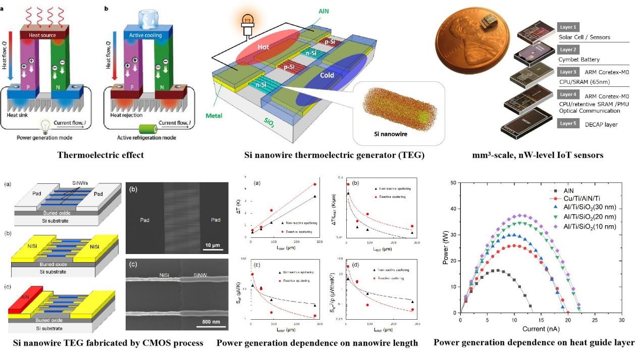 海量的物联网传感器亟需长效免维护的供电方案。硅纳米线热电器件与CMOS工艺兼容,为构建可缩放、易集成、自供电的物联网系统提供了理想路径。本研究致力于利用CMOS工艺开发平面型硅纳米线热电器件。针对微型热电器件因热电偶两端有效温差小而导致的发电效率低这一关键瓶颈,通过优化器件的导热层设计,有效降低了寄生热阻,从而实现了发电功率的显著提升。