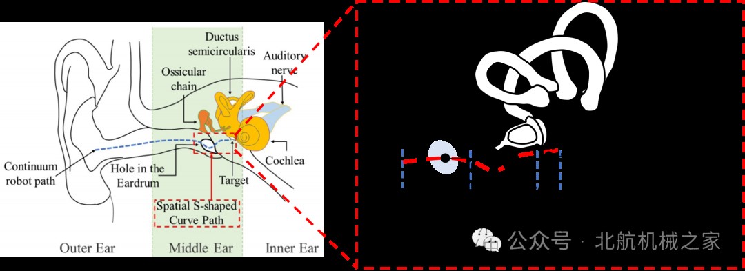 连续体机器人通过内耳圆窗进行淋巴液注射采样是一种治疗耳聋的新兴术式。这一术式要求连续体避开鼓膜、听骨等重要结构,是一项高精度操作,人工操作难以完成。连续体在中耳段的路径是一段有扭转的曲线,而且这段路径空间狭窄,操作危险性高,需要感知连续体机器人的形状和受力,以避免损伤耳内组织而致聋。因此提出了基于FBG的耳道连续体机器人感知方案。