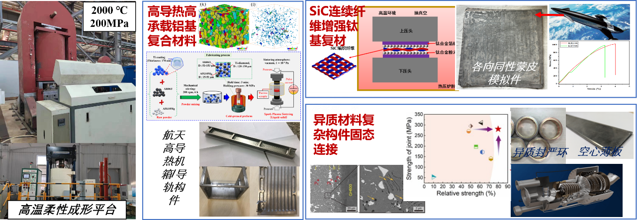 面向航空航天用复杂、中空构件,且具备越来越高的耐温、传热等极端性能/功能要求构件,提出了高温高压下粉固耦合柔性成形制造技术,突破了复杂结构粉固耦合精确控形、异质材料复杂构件高性能连接等关键技术,实现了高导热高承载铝基复合材料、高耐磨铁基复合材料、高耐温薄壁钛基复合材料研制,支撑了封严环、喷口等多类发动机用高性能复杂构件研制应用。