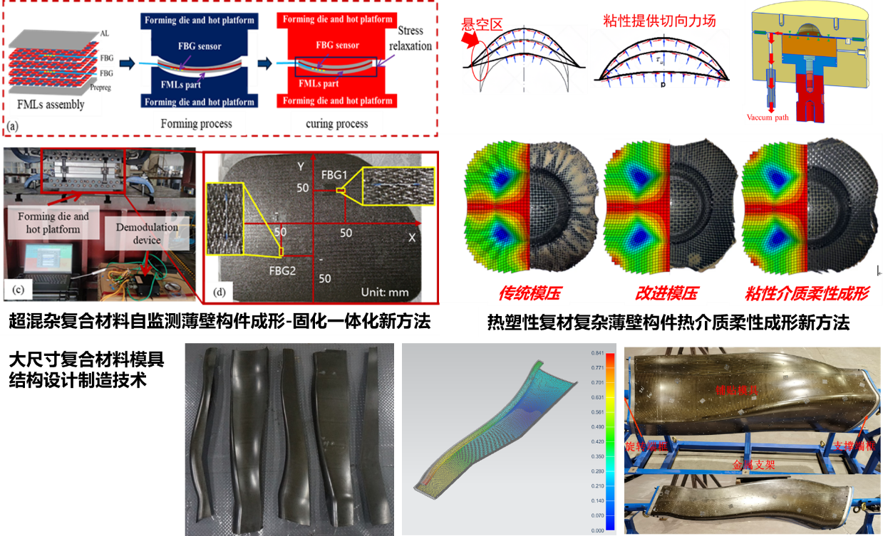 2) 先进复合材料复杂薄壁构件柔性热成形技术